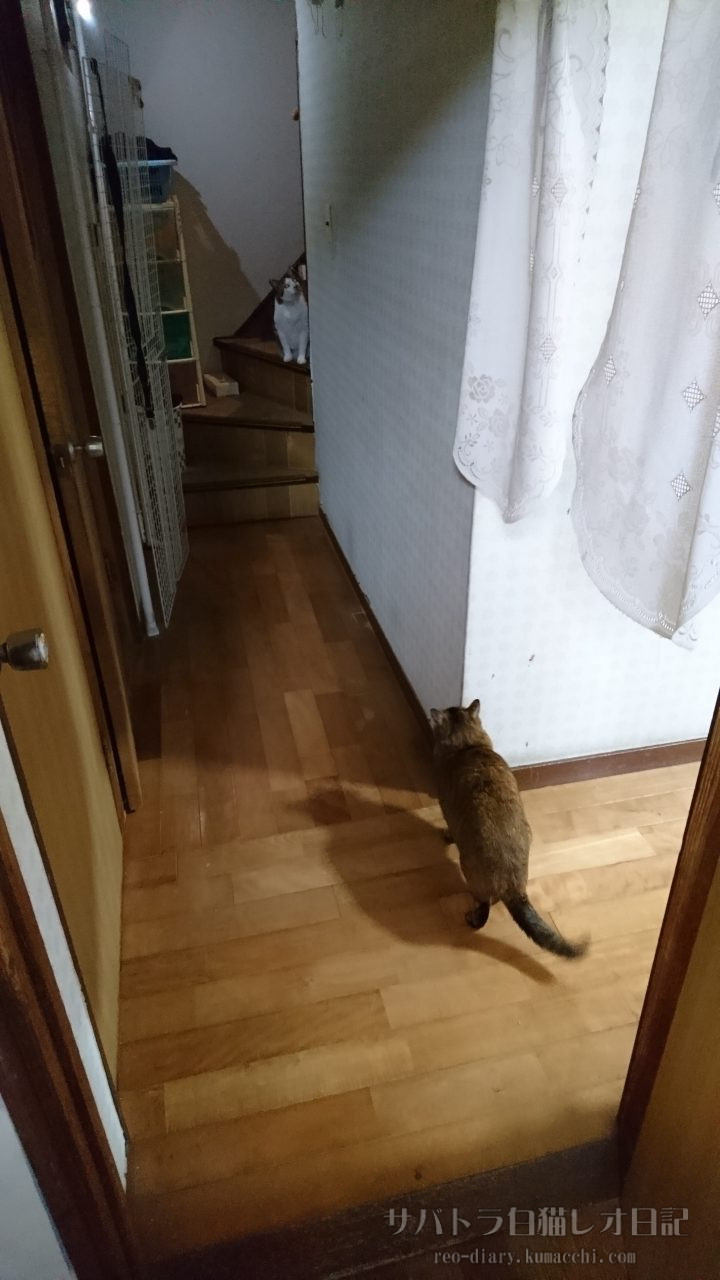 子猫達の部屋の掃除をしたりしていると掃き出しの曇りガラスの向こうに何やら猫らしき影。一瞬レオか子猫達