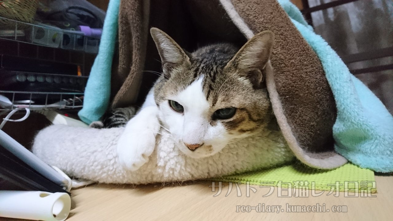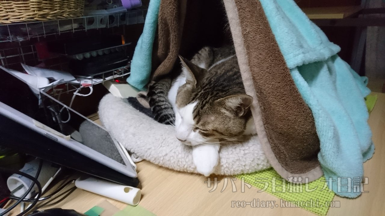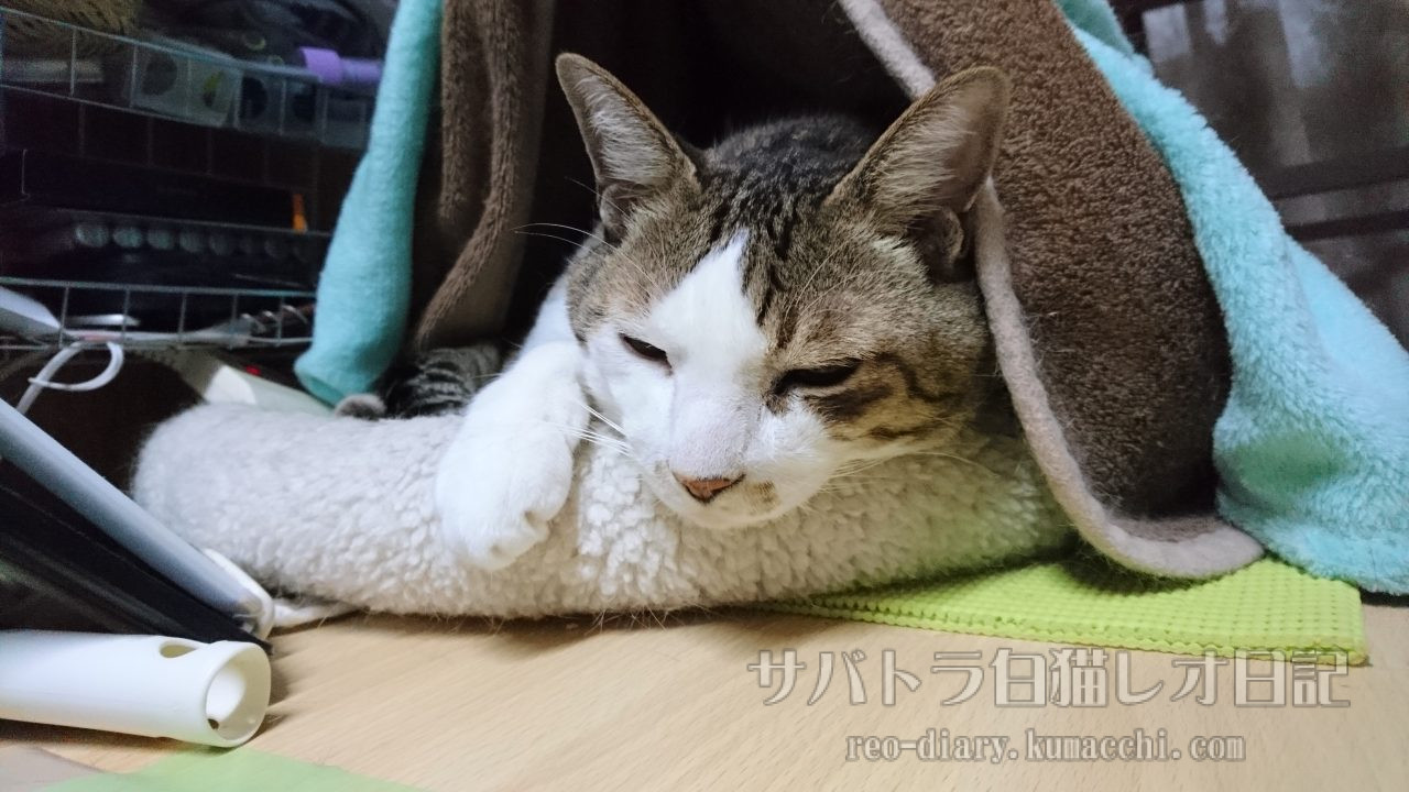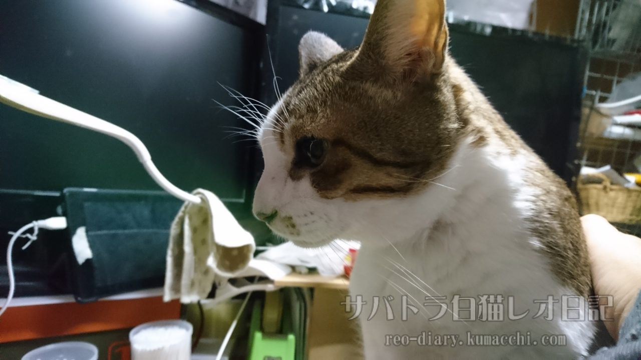 今日は朝から1回か2回シリンジでカロリーエースを飲ませてから仕事に行った。 帰ってくるとレオは、ベ