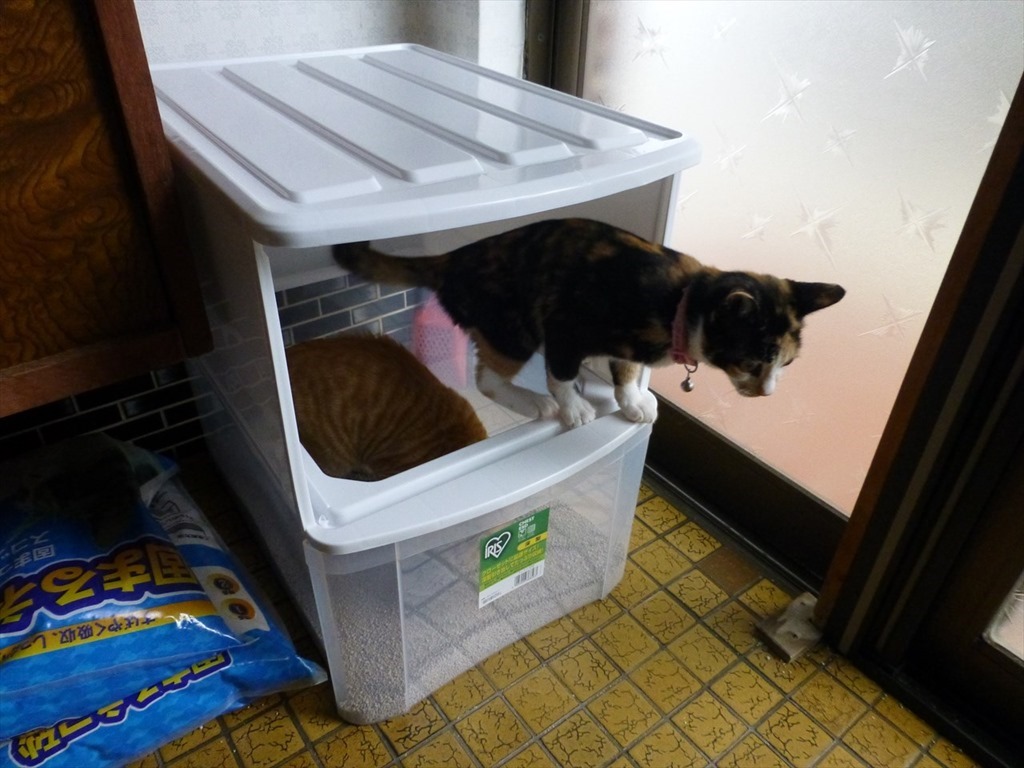 居心地がいいようで2匹で入り浸ったり、トイレの区画にもいっしょに入って猫砂を掘っている。デオトイレには見向きもしなくなった。