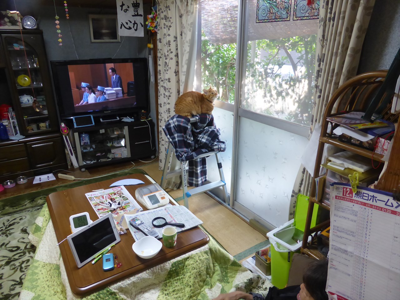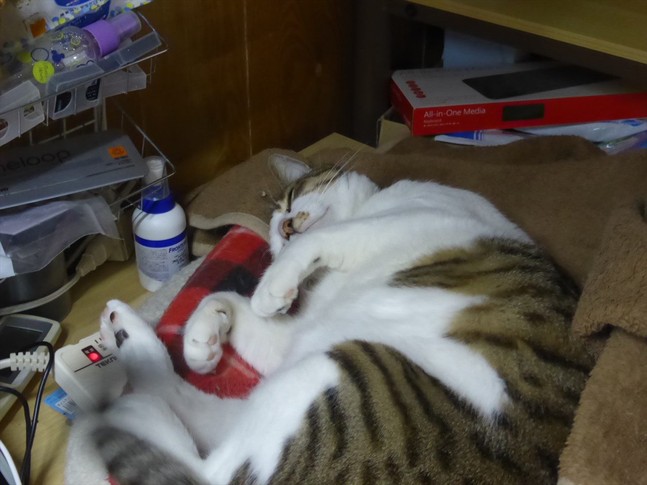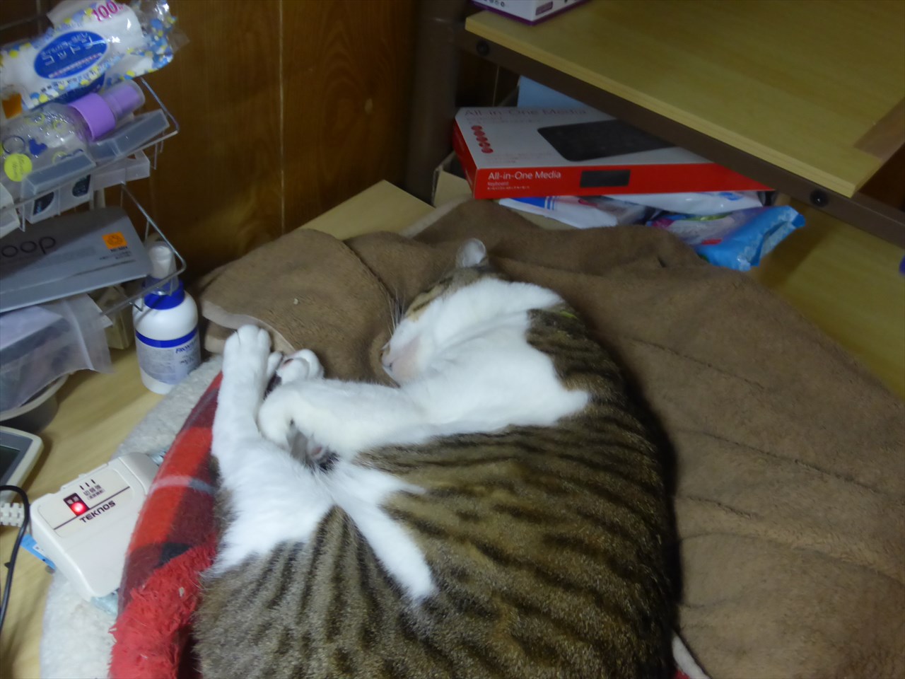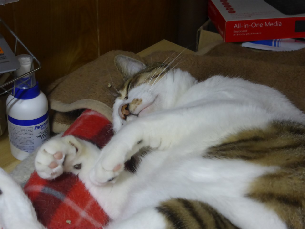 帰省してきた弟の尽力により、チャトラがキャットウォークの上で寝てくれるようになった。