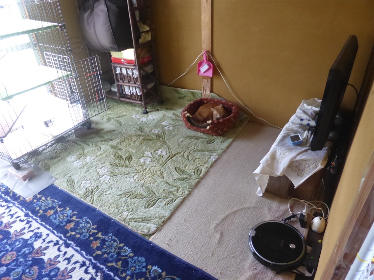 幼少期をミケと一緒に暮らした部屋で一緒に暮らしたケージ内の最上段で日向ぼっこをしたり、ミケと一緒に寝ていたベッドで寝たりして過ごしている。